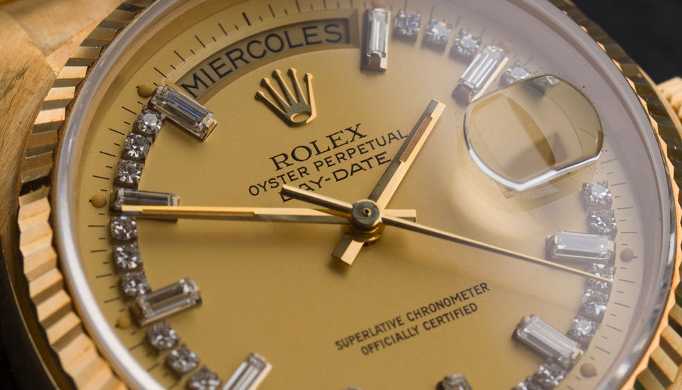 1982 LNOS Rolex Day-Date Ref. 18038 with 'Baguette Diamond String Lemon dial'